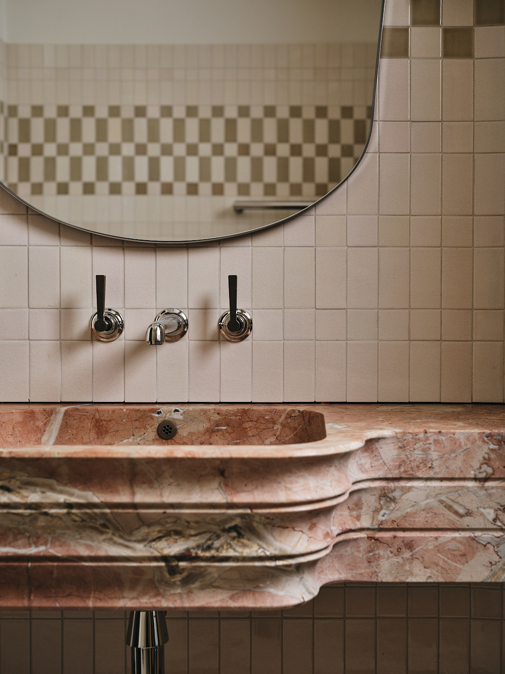 - Bathroom sinks echo the graceful curves of Shropshire House, a nearby Art Deco landmark.